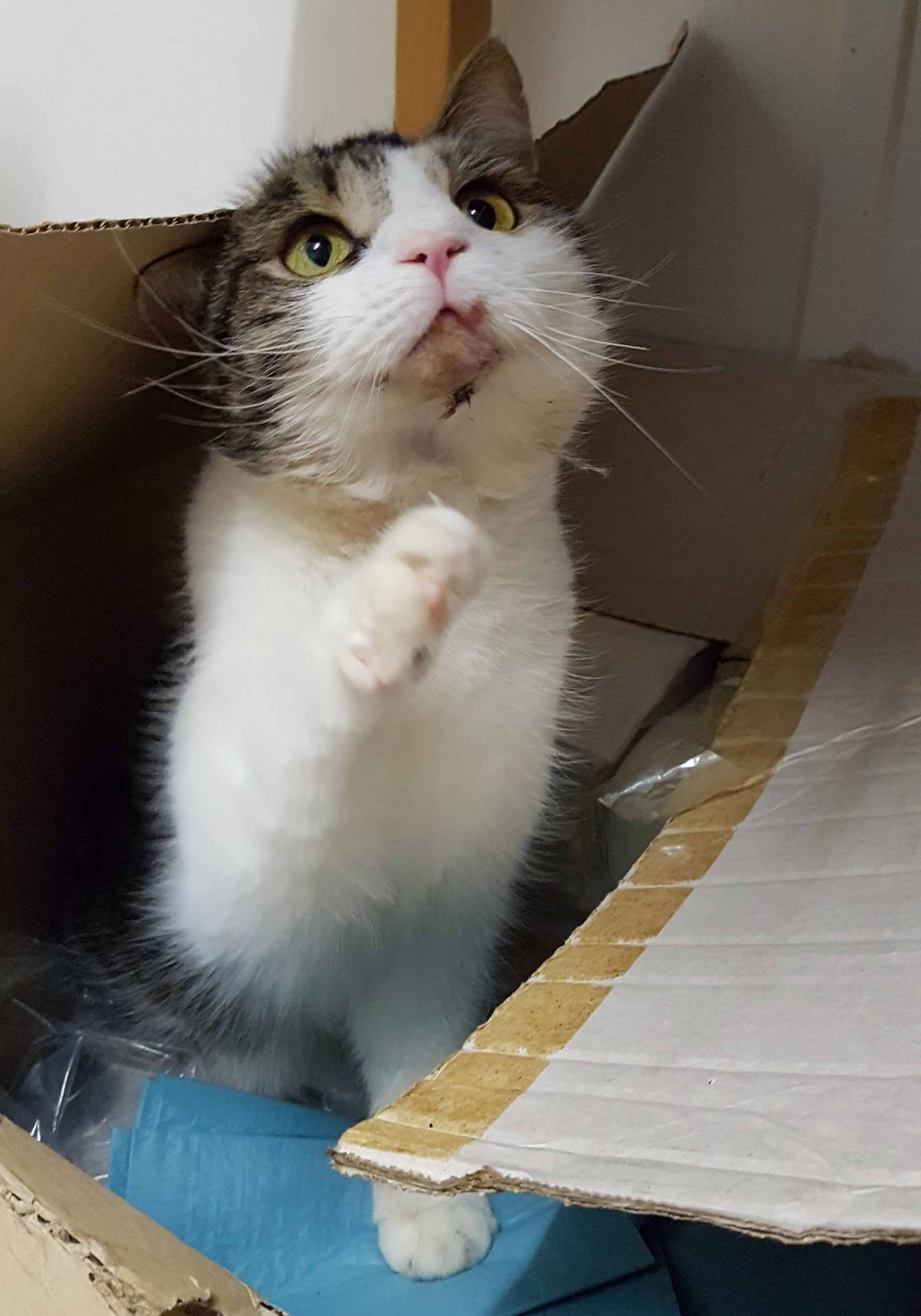 Zum Glück hat die Finderin sich von solchen Anfeindungen nicht abschrecken lassen und hat den ihr unbekannten Kater zu uns gebracht. Yoshi (so hatten wir ihn genannt, tatsächlich heißt er Körmit) war zunächst sehr ungehalten uns gegenüber, so dass wir ihn zur Ruhe kommen ließen und an Heiligabend überprüften, ob er gechipt ist.