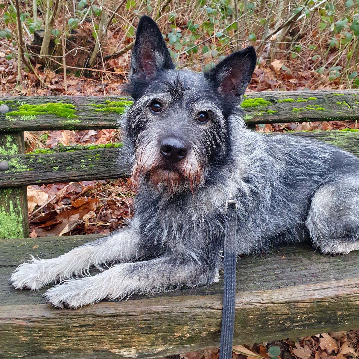 Wolle ist ein ängstlicher und misstrauischer Hund. Er hat bei uns einige Zeit gebraucht, ehe er zu einzelnen Personen Vertrauen gefasst hat.