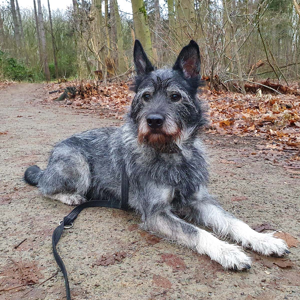 Durfte ihn anfangs niemand anfassen, hat er nun eine handvoll Menschen, denen er sich geöffnet hat und denen er vertraut. Damit er sich nicht nur auf “seine” Menschen einlässt, geht er inzwischen mit verschiedenen Gassigängern spazieren – und das klappt richtig gut.